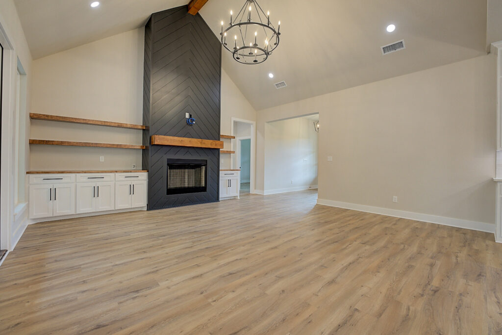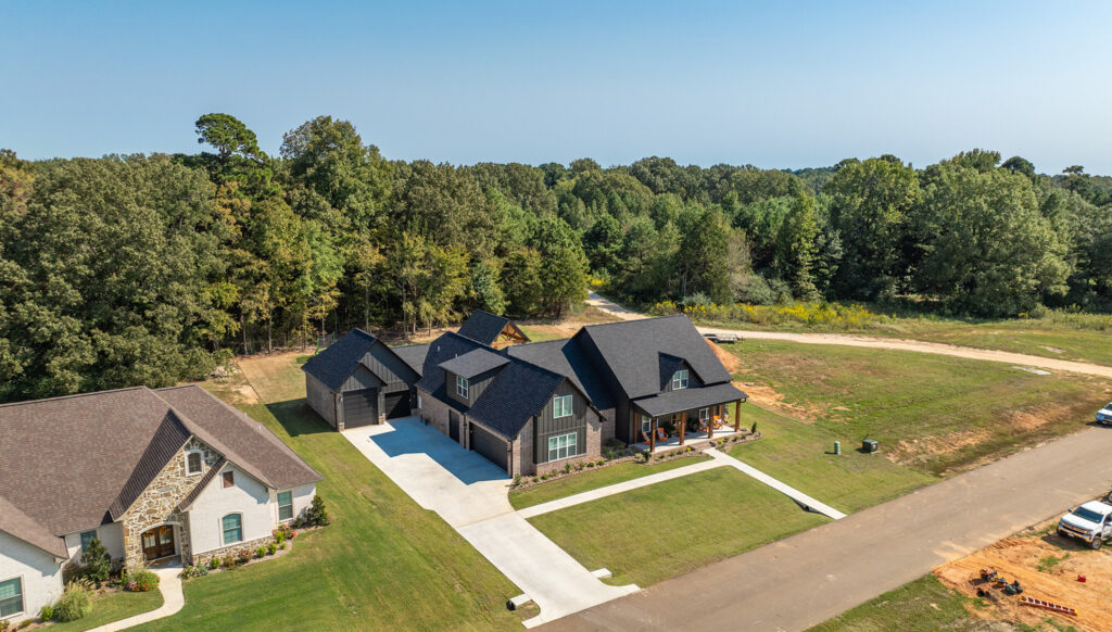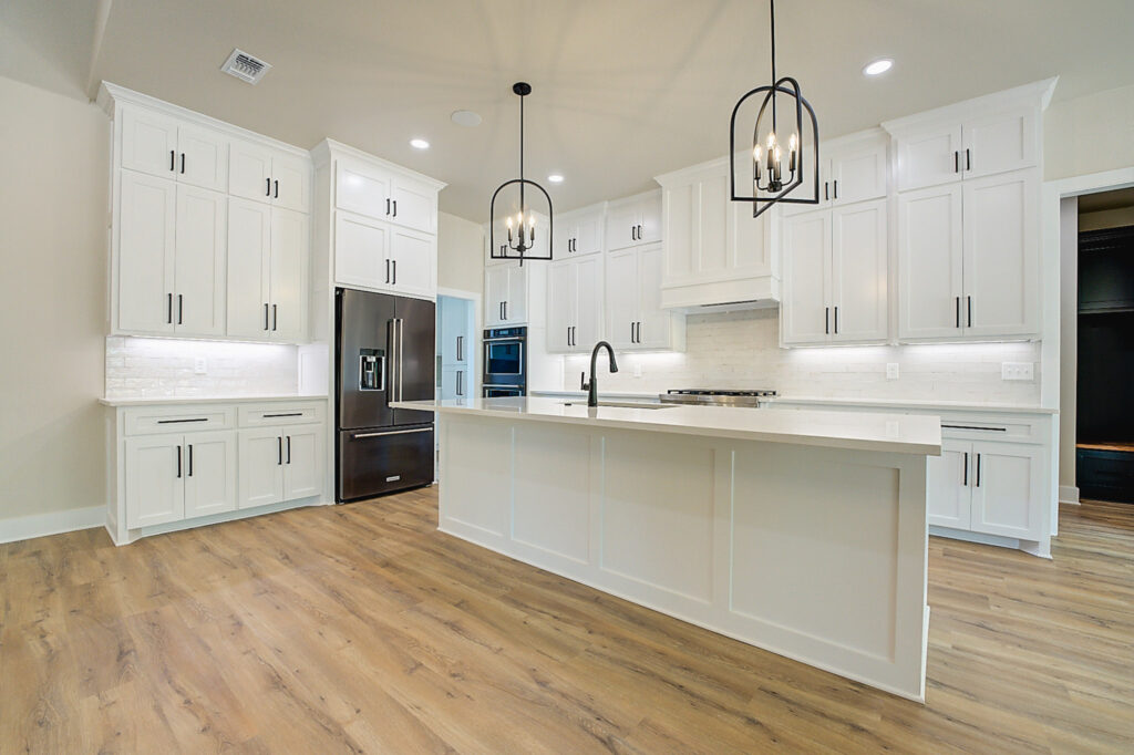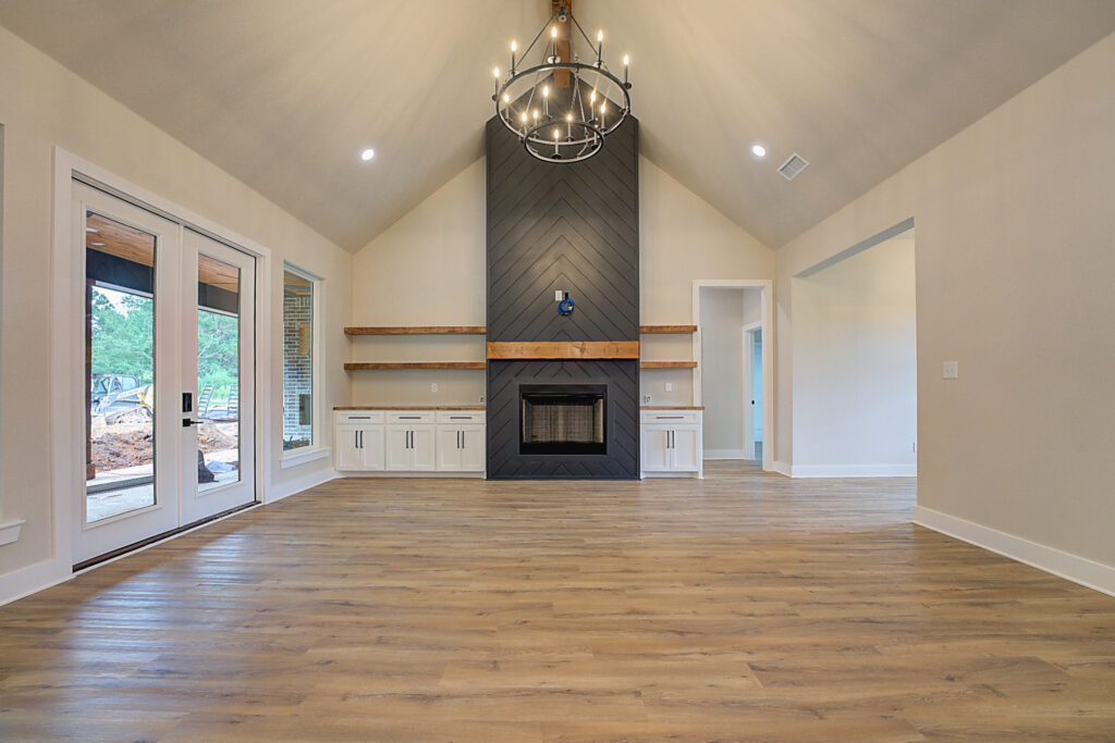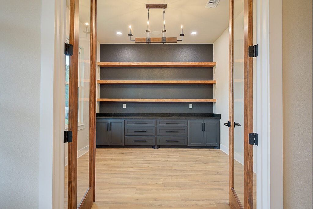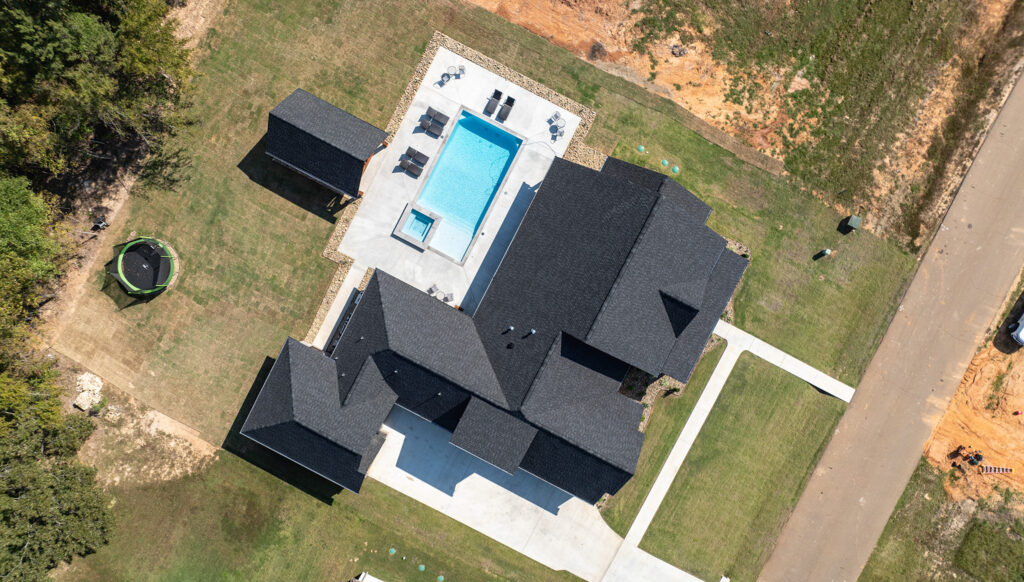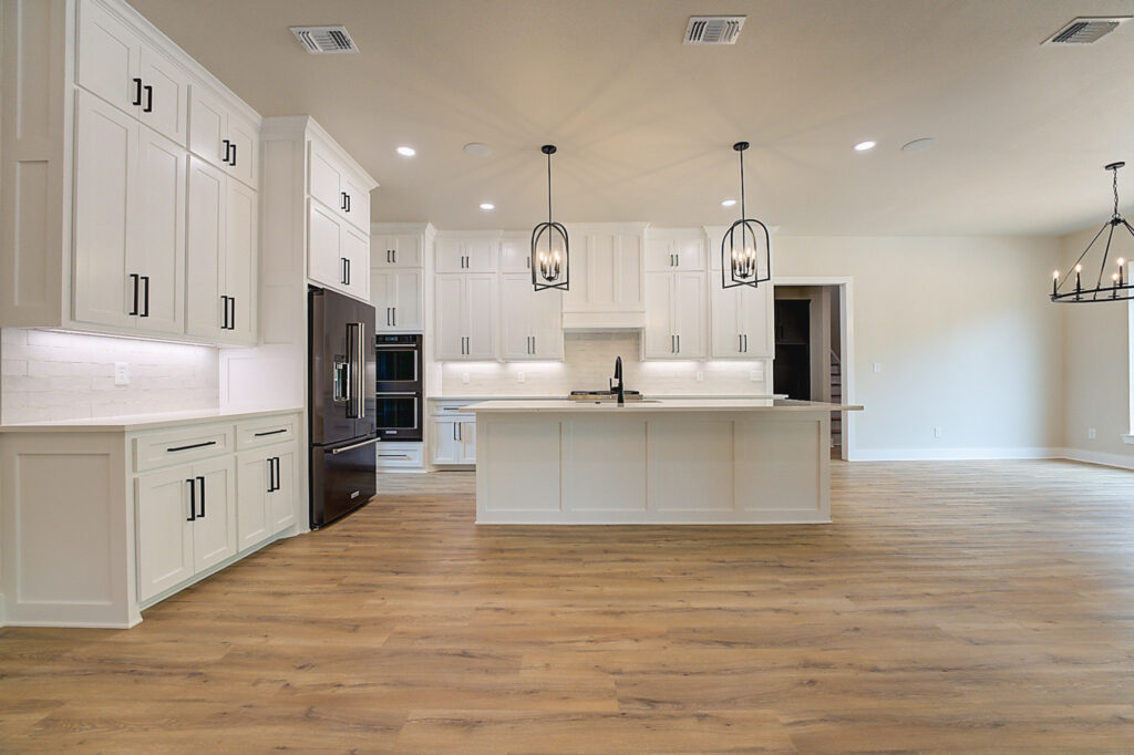 This stunning custom home blends classic brick craftsmanship with sleek modern finishes. The open-concept interior features elegant white cabinetry, warm wood flooring, and striking black accents throughout. From the spa-inspired master bath to the gourmet kitchen and spacious living area with custom shelving, every detail reflects quality and comfort. Outside, a private pool and covered patio create the perfect space for relaxing or entertaining — all wrapped in timeless design and superior construction.