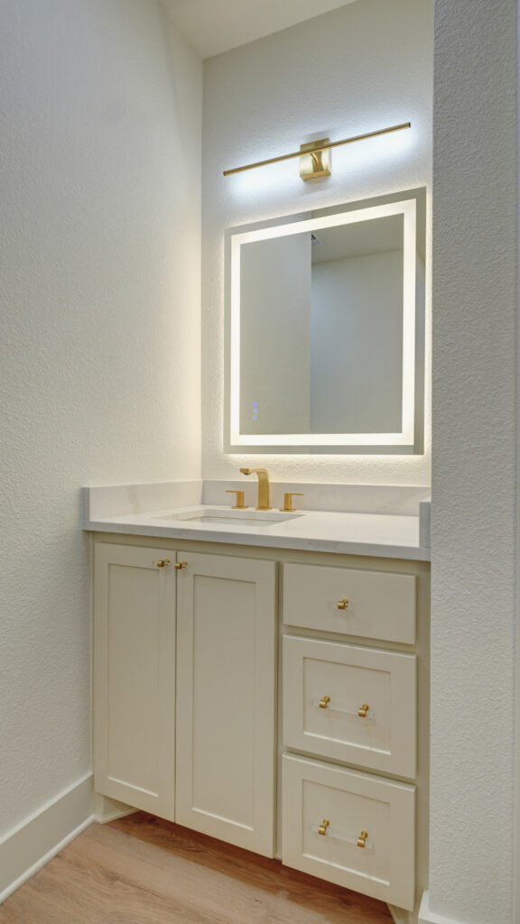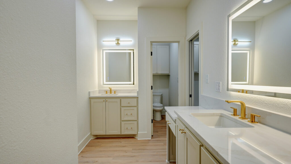 Every element—like the gold hardware, custom cabinetry, walk-in closet systems, and designer light fixtures—reflects precision craftsmanship and thoughtful design for a truly elevated living experience.