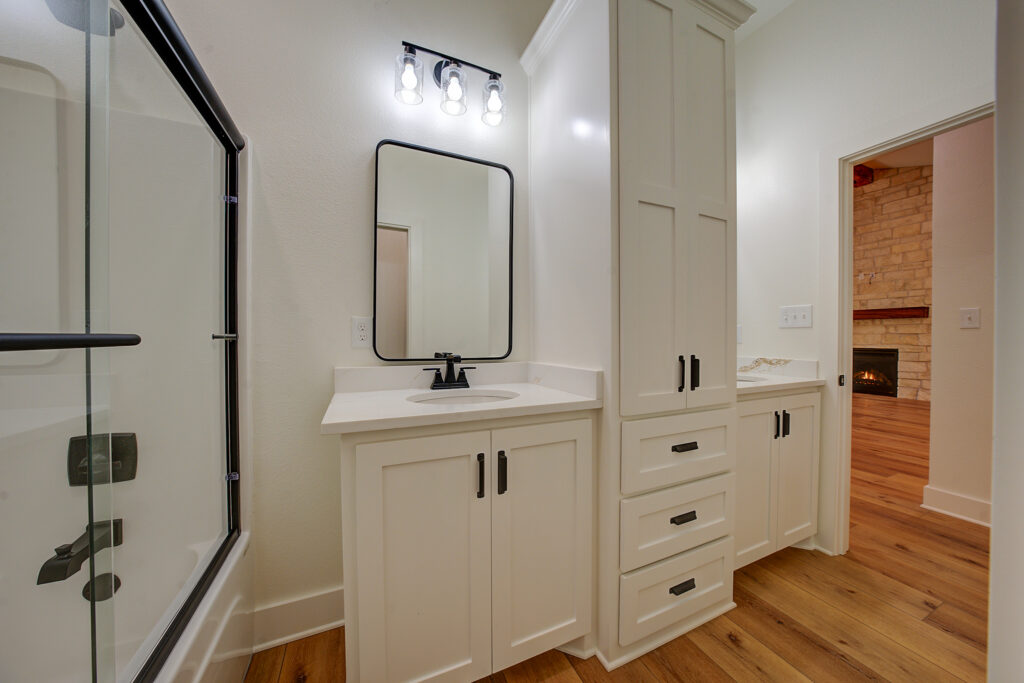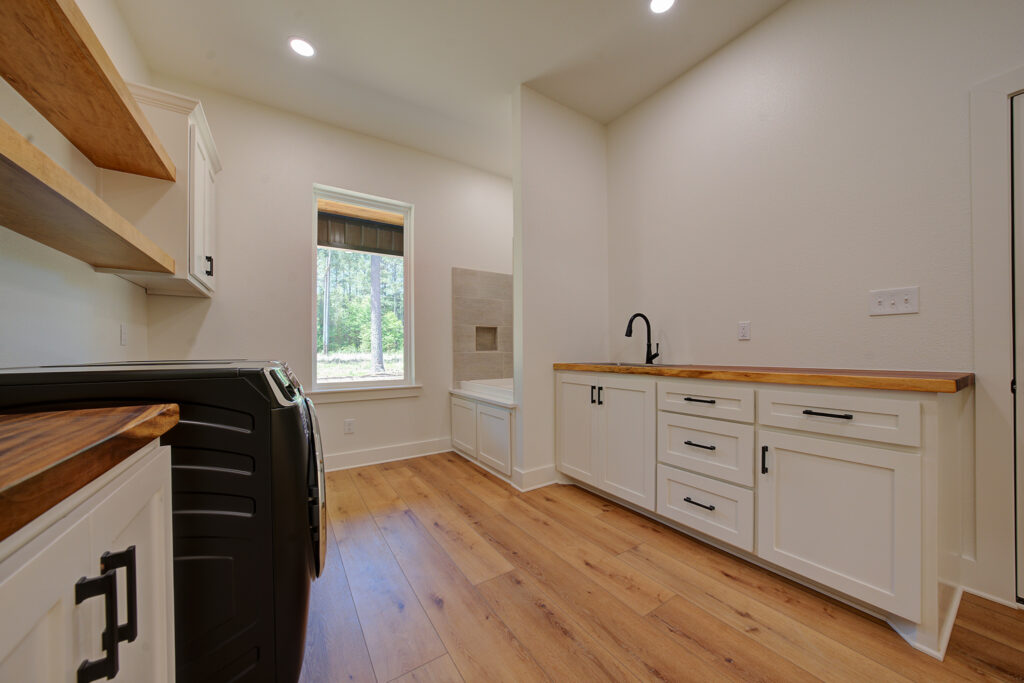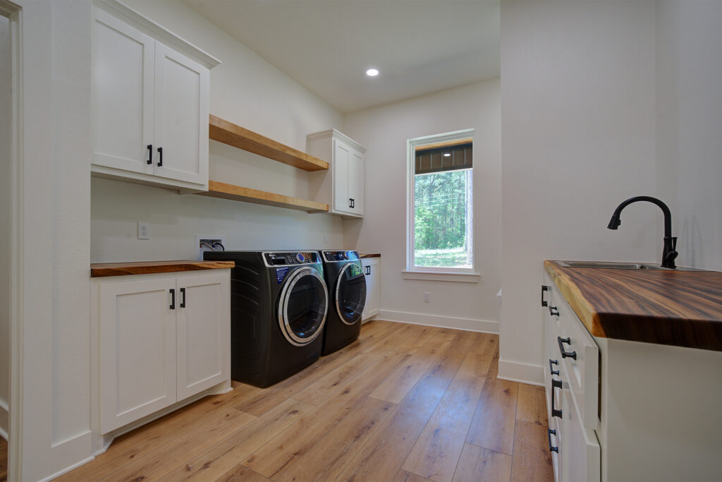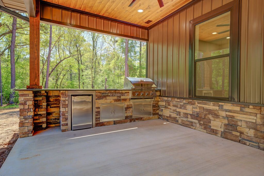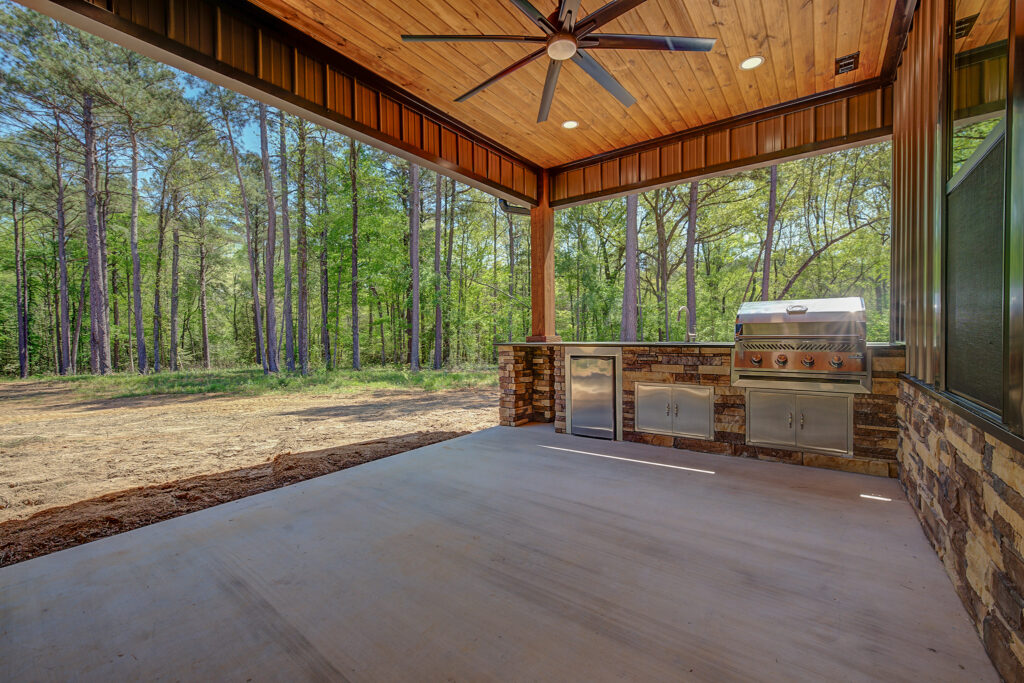This stunning modern farmhouse showcases the perfect marriage of rustic charm and refined elegance. From the moment you arrive, the expansive covered porches with natural wood ceilings and striking brick columns welcome you home. Inside, a dramatic two-story foyer with a statement arched front door sets the tone for the exceptional craftsmanship throughout. The heart of the home features a chef’s kitchen with floor-to-ceiling cabinetry, quartzite countertops, and a unique stone archway leading to the main living spaces. The spa-like master suite offers vaulted ceilings, a luxurious soaking tub, walk-in shower with premium tile work, and custom closet systems. Every detail has been thoughtfully designed—from the custom mudroom with rustic wood accents to the dedicated dog wash station, walk-in pantry, butler’s pantry with floating wood shelves, and abundant built-in storage throughout. The outdoor living spaces are equally impressive, featuring a full outdoor kitchen, fireplace, and generous covered entertaining areas. Premium wide-plank flooring, designer lighting, and sophisticated millwork complete this exceptional build.