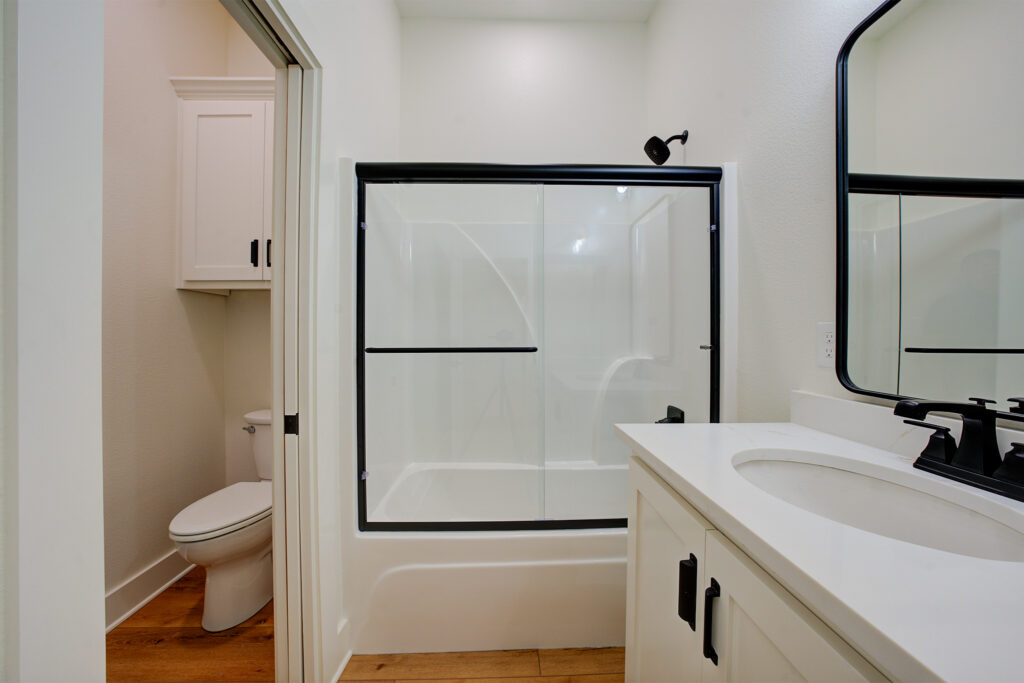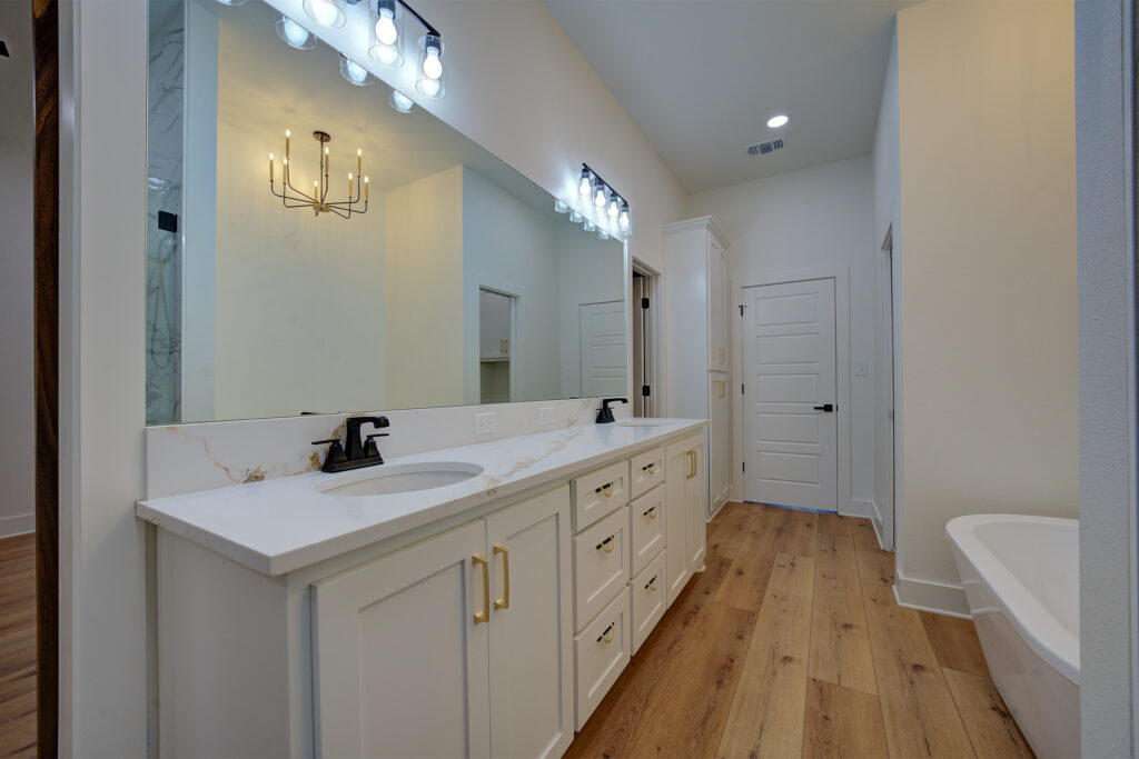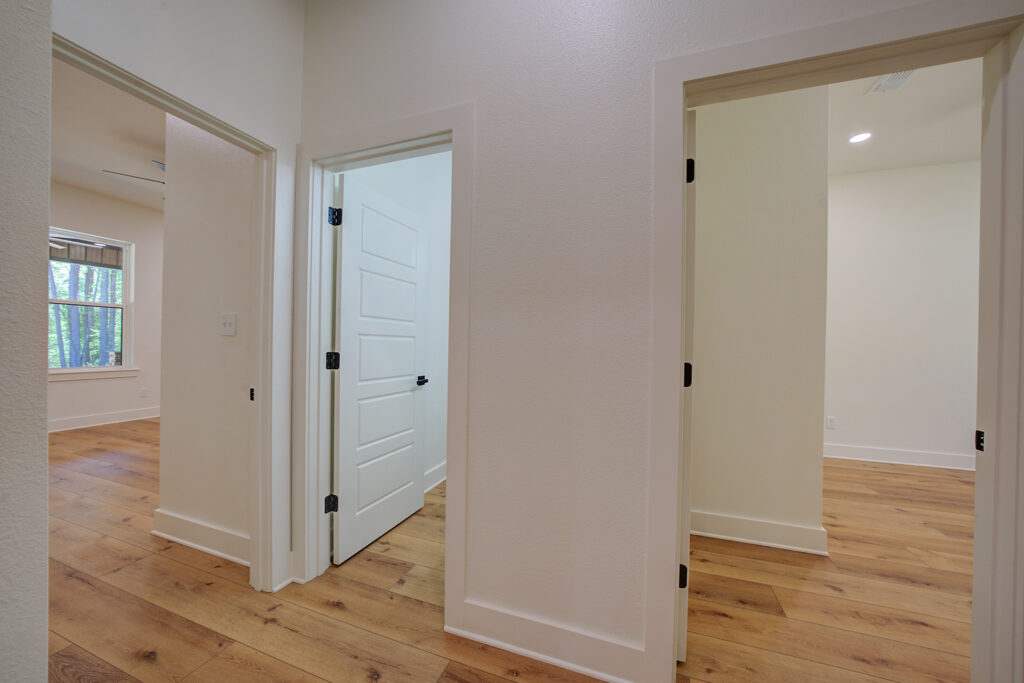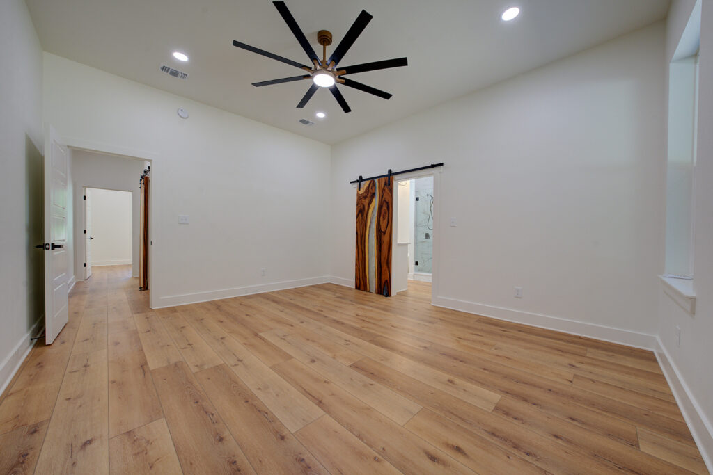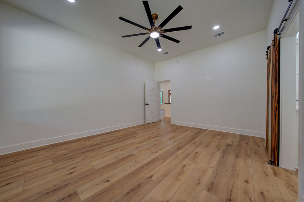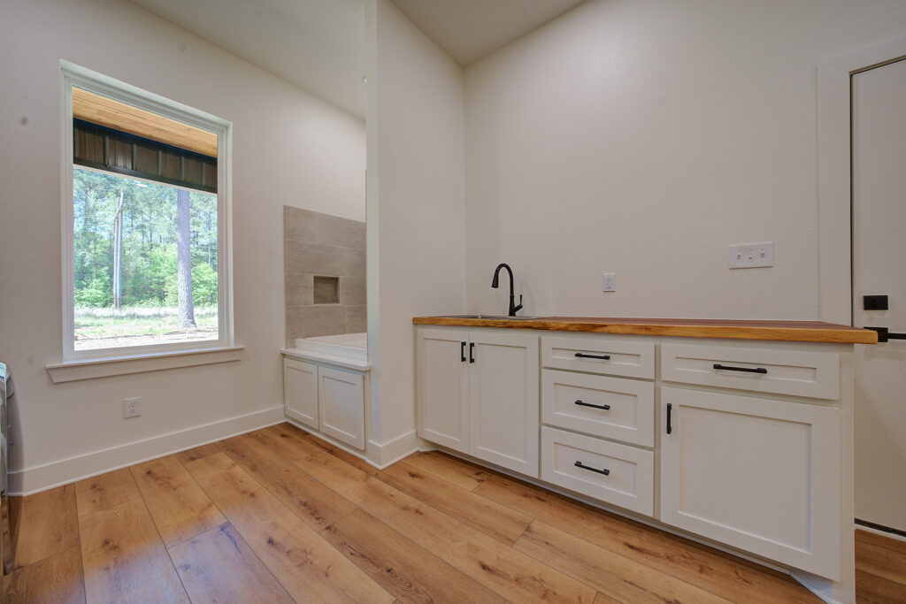This stunning modern farmhouse showcases the perfect marriage of rustic charm and refined elegance. From the moment you arrive, the expansive covered porches with natural wood ceilings and striking brick columns welcome you home. Inside, a dramatic two-story foyer with a statement arched front door sets the tone for the exceptional craftsmanship throughout. The heart of the home features a chef’s kitchen with floor-to-ceiling cabinetry, quartzite countertops, and a unique stone archway leading to the main living spaces. The spa-like master suite offers vaulted ceilings, a luxurious soaking tub, walk-in shower with premium tile work, and custom closet systems. Every detail has been thoughtfully designed—from the custom mudroom with rustic wood accents to the dedicated dog wash station, walk-in pantry, butler’s pantry with floating wood shelves, and abundant built-in storage throughout. The outdoor living spaces are equally impressive, featuring a full outdoor kitchen, fireplace, and generous covered entertaining areas. Premium wide-plank flooring, designer lighting, and sophisticated millwork complete this exceptional build.