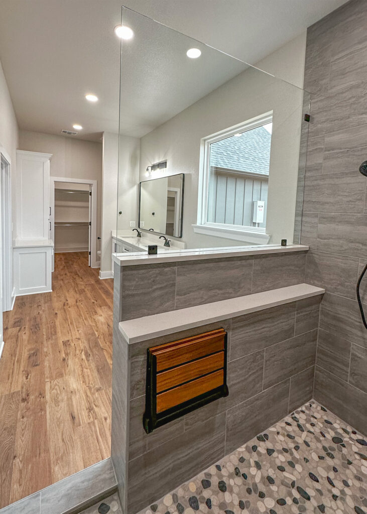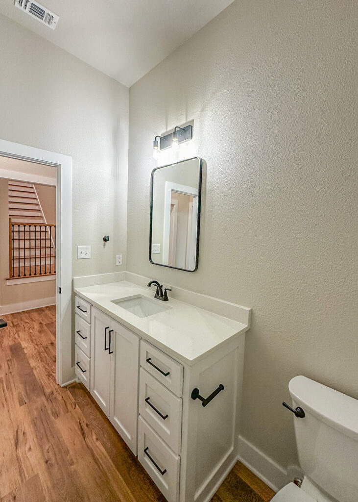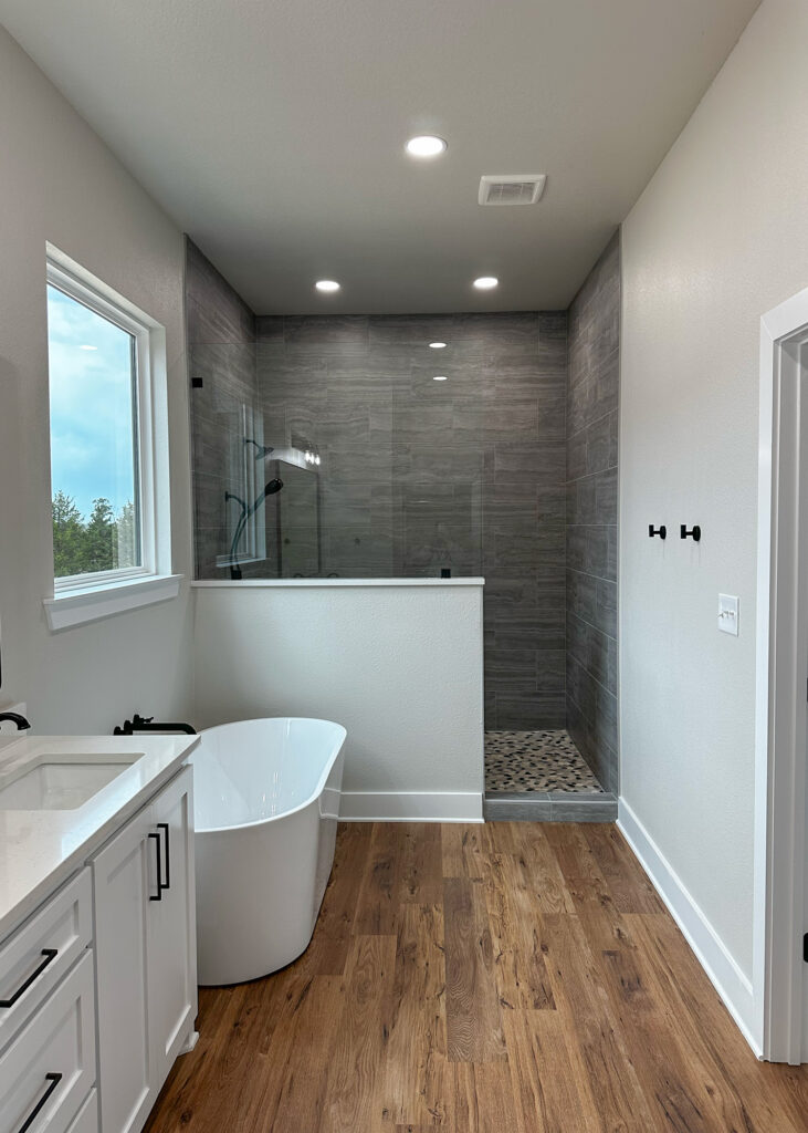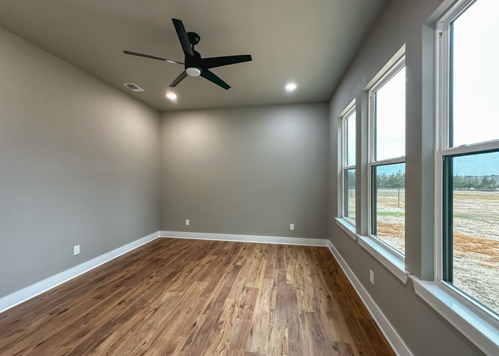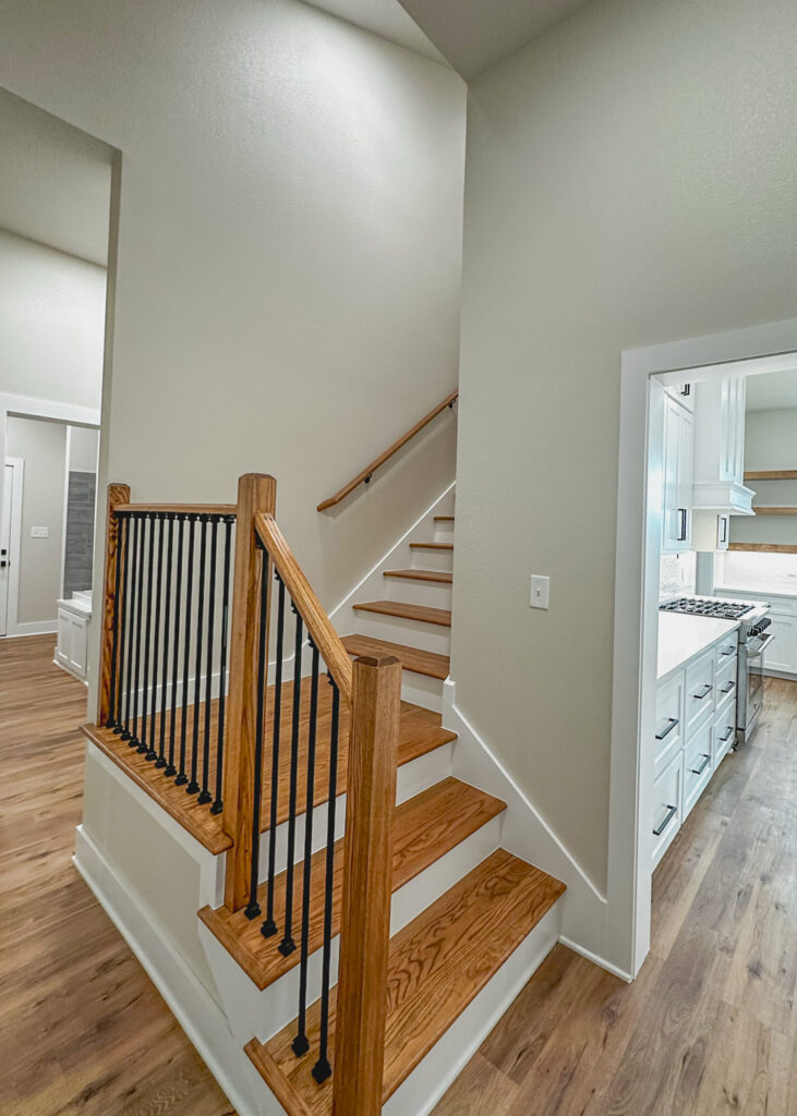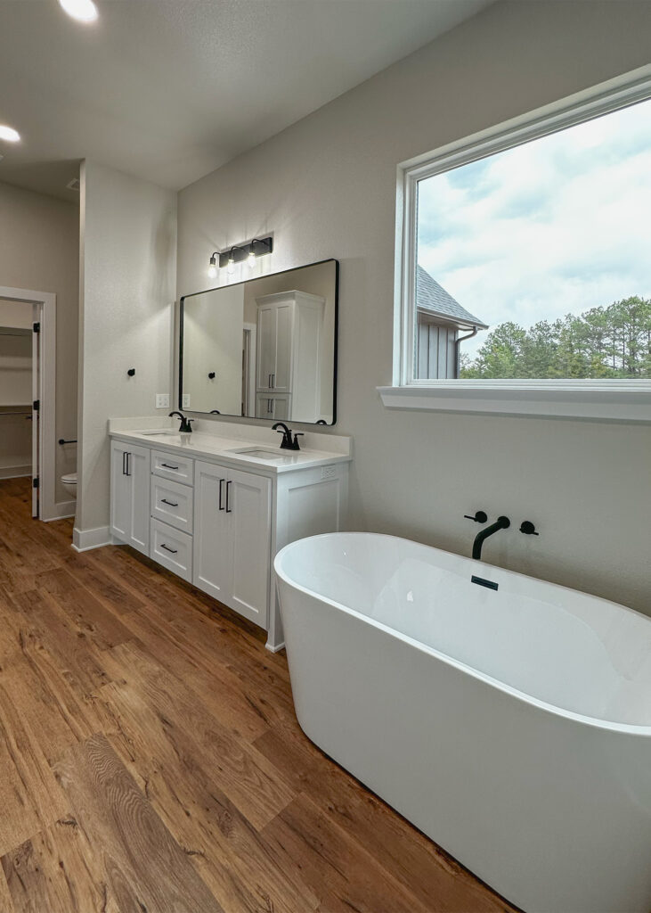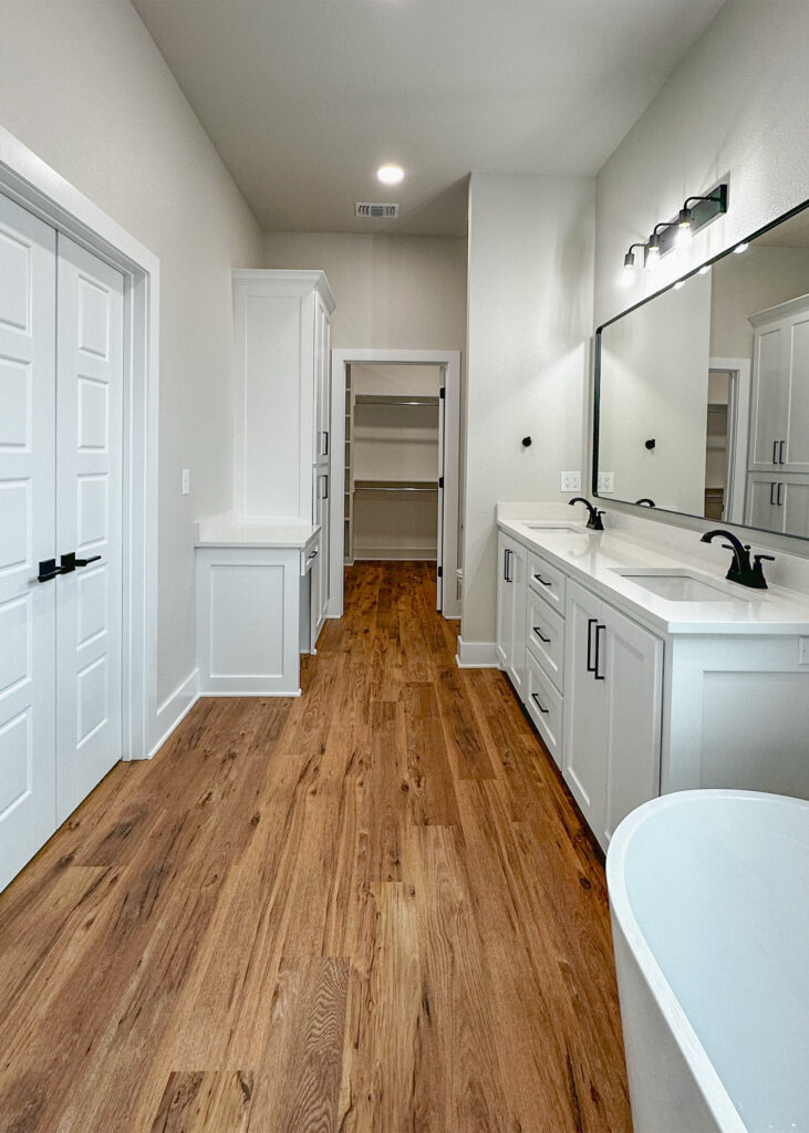 This stunning custom home showcases expert craftsmanship and timeless design. Featuring bold exterior lines, warm brick and wood accents, and a welcoming wrap-around porch, it perfectly balances modern sophistication with country comfort. Inside, the open-concept layout highlights soaring ceilings, natural light, and elegant finishes—from the grand stone fireplace and exposed beams to the spa-inspired bath and gourmet kitchen with custom cabinetry and floating shelves. Every detail reflects thoughtful design and quality construction built to stand the test of time.